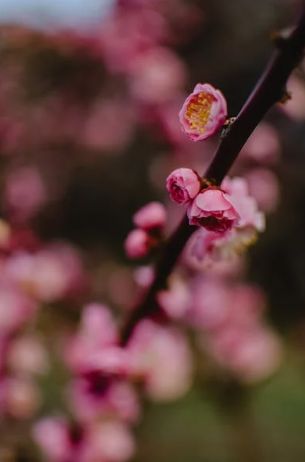 ②崔道融在《梅花》中曾这样写,“数萼初含雪,孤标画本难。香中别有韵,清极不知寒。”梅花在冷风瑟瑟的寒冬独自傲立,静静盛放。它的身姿在寂寥的冬天中显得格外独特。闻着它清新的香味,即使寒冬也不觉得冷。